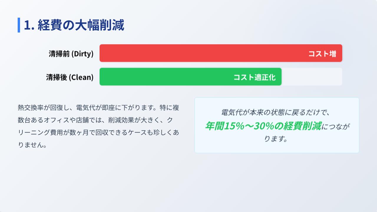 また、機能低下により効きが悪くなったり、消費電力が高くなってしまうことも…