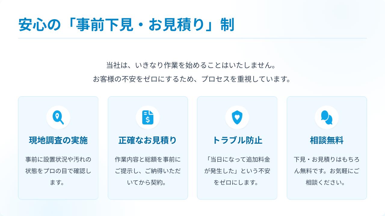 詳細をお聞きしてお見積もりをご提示。(場合により現地調査をさせていただきます)