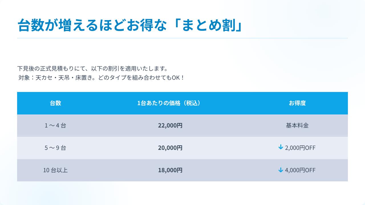 ●2台以上からさらに割引させて頂きますのでご相談ください。